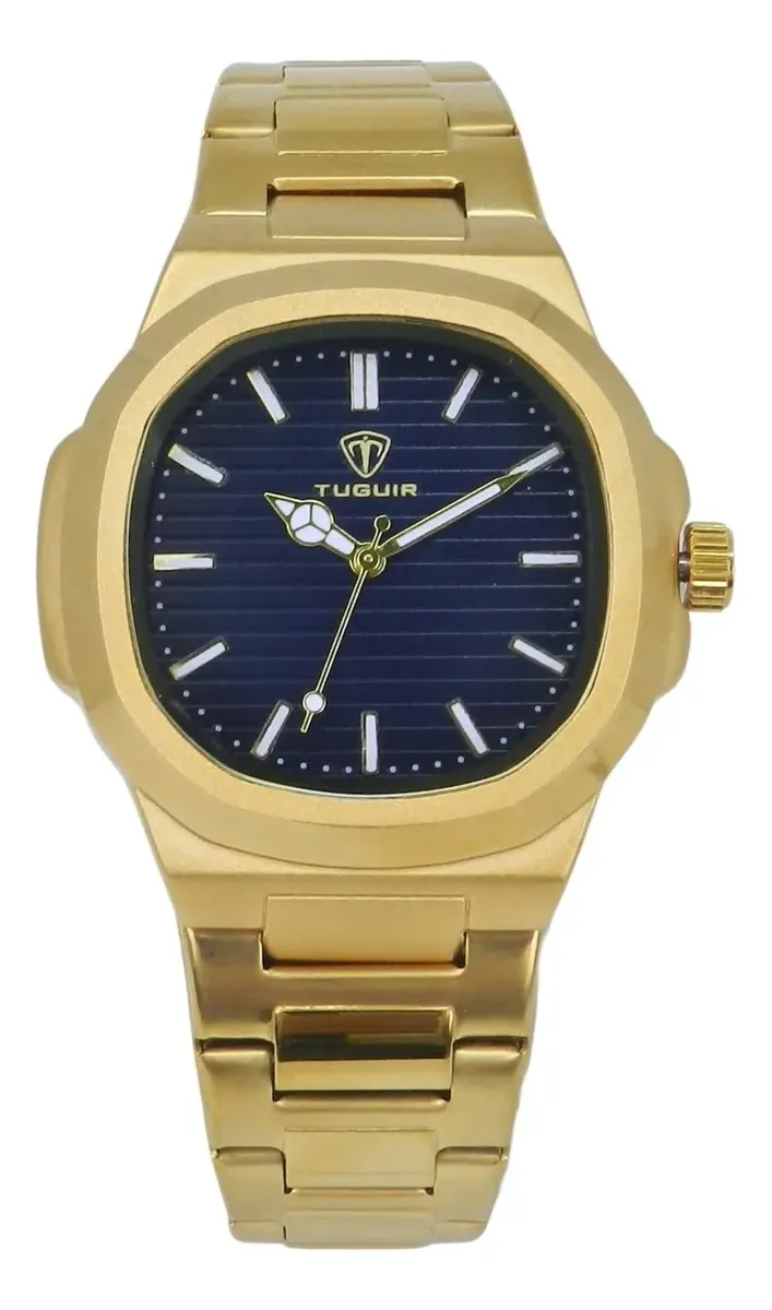 Relógio Unissex Tuguir Analógico 9218 Dourado e Azul Marca: Tuguir Categoria: Analógico Analógico: Sim (1 Horário) Ponteiros Fluorescentes: Sim Digital: Não Luz: Não Resistente à Água: 5 ATM (Pode ser usado para nadar no raso, por pouco tempo submerso) - Respingos: Sim - Chuva: Sim - Lavar Carro: Sim - Lavar Louça: Sim - Natação: Sim - Mergulho: Não Característica do Vidro: Cristal Mineral Tipo de Fecho: Dobrável com Botão Cor da Caixa: Dourado Material da Caixa: Metal Banho IP Formato da Caixa: Quadrado Comprimento da Caixa: 40,00 (mm) Largura da Caixa: 40,00 (mm) Espessura da Caixa: 10,50 (mm) Cor da Pulseira: Dourado Material da Pulseira: Aço Largura da Pulseira: 19,50 (mm) Comprimento Máximo da Pulseira: 280,00 (mm) Alimentação: Bateria Interna Peso Líquido: 0,125 Kg Modelo: 9218 Cor Predominante: Dourado Cor Diferencial: Azul Garantia: 12 Meses Conteúdo da Embalagem: 01 Relógio 01 Embalagem 01 Termo de Garantia Garantia do vendedor: 12 meses